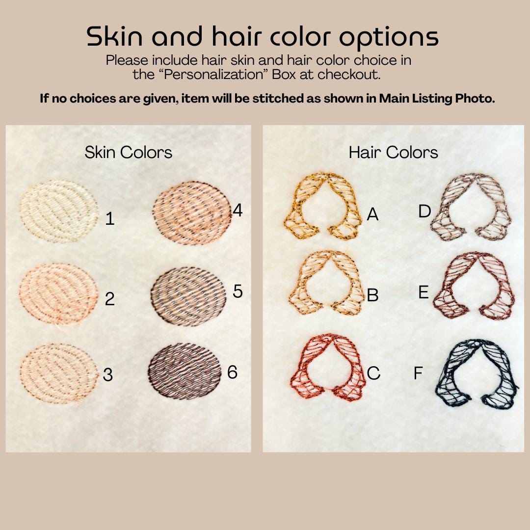 Personalized Embroidered Stocking Tag. Reuse each year for those special gifts or Christmas Stocking! Multiple Skin and hair colors available- please indicate choices in the Personalization box. If no skin/hair color choices are made, tag will be stitched as shown in the main listing photo. Be sure to include personalization and check the spelling and capitalization of all names!